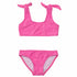 Indulge in beach-ready comfort with this bubblegum-pink crop bikini top for girls, crafted from plush terry fabric with a subtle floral print. The unique texture enhances the bikini's stylish design, making it ideal for those who appreciate both fashion and comfort in their swimwear.