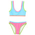Be seen on the beach with this block-colored crop bikini for girls. The top pops in aqua with vibrant pink, citron, and orange trim, tailored with removable padding for a customized fit in larger sizes. The pink bottoms keep the fun going with their vibrant hue.