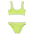 Splash into summer with the color of summer, a vibrant citron-colored crop top bikini, featuring horizontal rib texture. The crop top includes white trim and removable padding for older girls, offering a comfortable fit. The bottoms match in style and comfort, ensuring you look the part at the beach or pool.