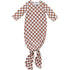 These gowns are size 0-3. They are made out of supremely soft Bamboo Rayon to keep your little one comfortable. We have a variety of gender neutral designs and colors making them perfect for any baby. They have fold over hands and two snaps for easy on and off. We also have shoulder flaps to make it easily pull over your little ones head, we want to make dressing your baby as easy as possible. The bottom is easily tied and untied in a knot for no-fuss diaper changes which makes it a newborn baby essential! These are made out of the same fabric as our stretch swaddles and match the colors of the stretch swaddles, head wraps, and hats.