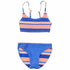 Experience the ultimate in beach flexibility with this bikini top, featuring stripe fabric with shirring for comfortable wear. Adjustable straps ensure the perfect fit, and the reversible bottoms switch from a solid azure blue to stripes, giving you two looks with minimal fuss.